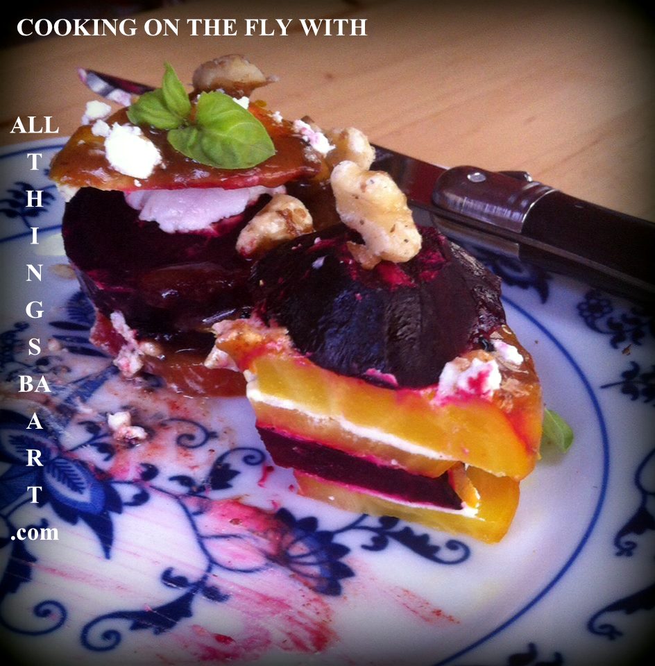 The BA’s Beet Towers Recipe starts with, my friend Jonah Jay Jenkins roasted beet recipe. It’s unbelievably easy. I use both purple and gold organic beets. I love the color and I just think organic beets taste AMAZINGLY better than everything else!