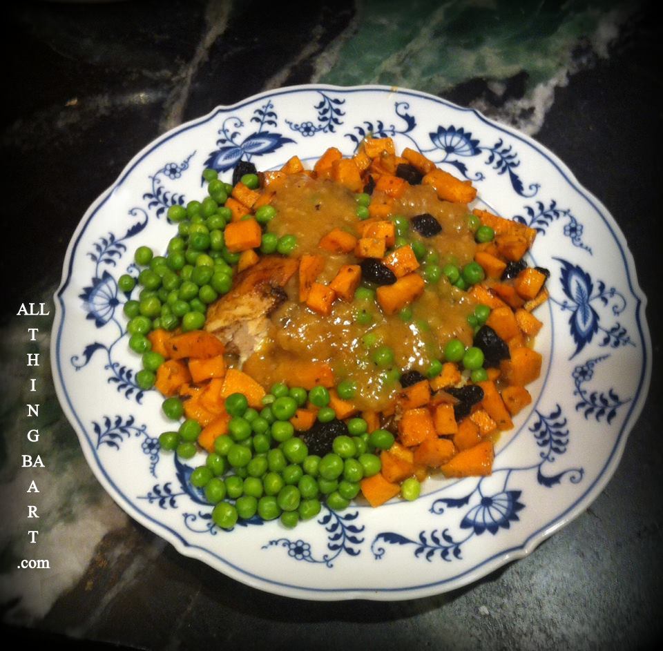 While this is still a great dish and wonderful for winter, it is not as ground breaking as the crock-pot turkey. BOOO HOOO! I have however come upon a learning curve with the roasted sweet potatoes; this time I added some bing cherries, not bad!